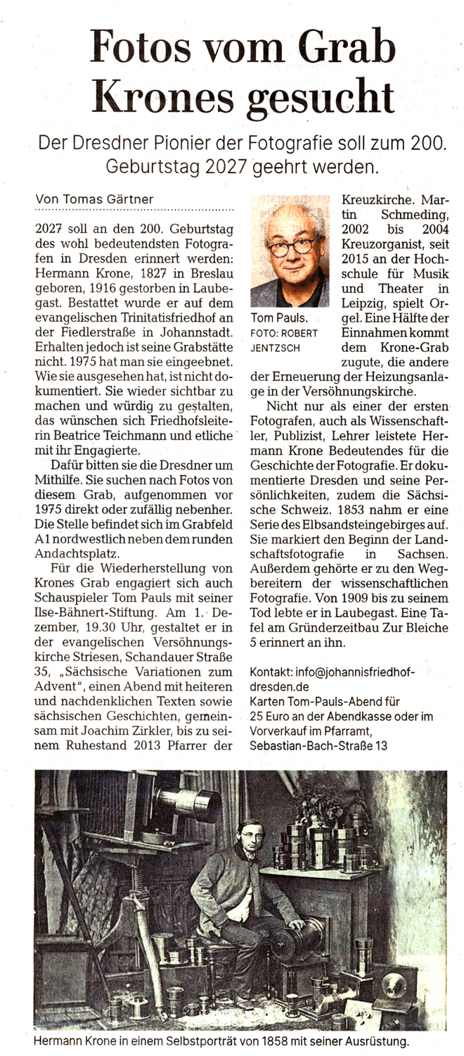 Der Dresdner Pionier der Fotografie soll zum 200. Geburtstag 2027 geehrt werden.