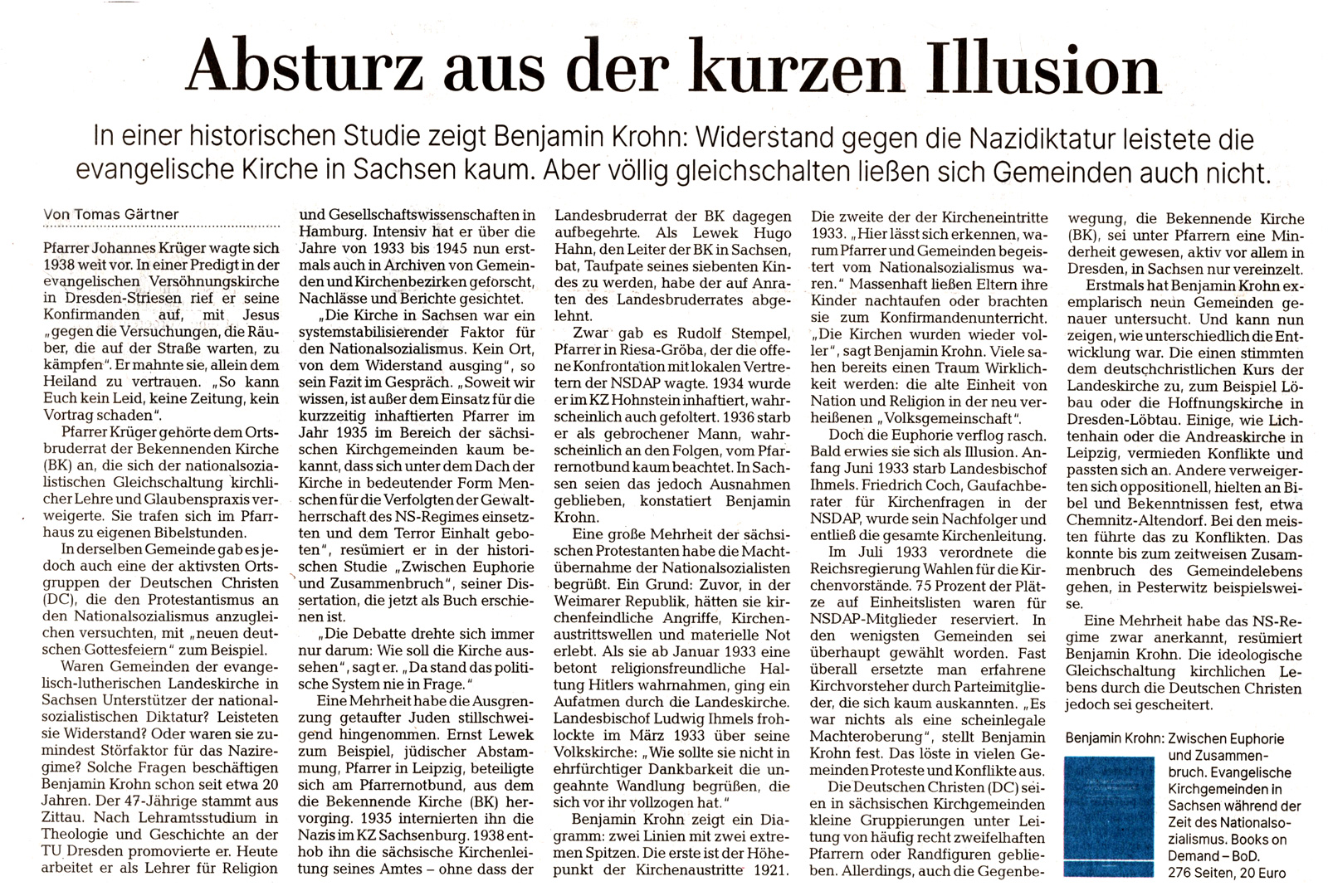 In einer historischen Studie zeigt Benjamin Krohn: Widerstand gegen die Nazidiktatur leistete die evangelische Kirche kaum. Aber völlig gleichschalten ließen sich die Gemeinden auch nicht.